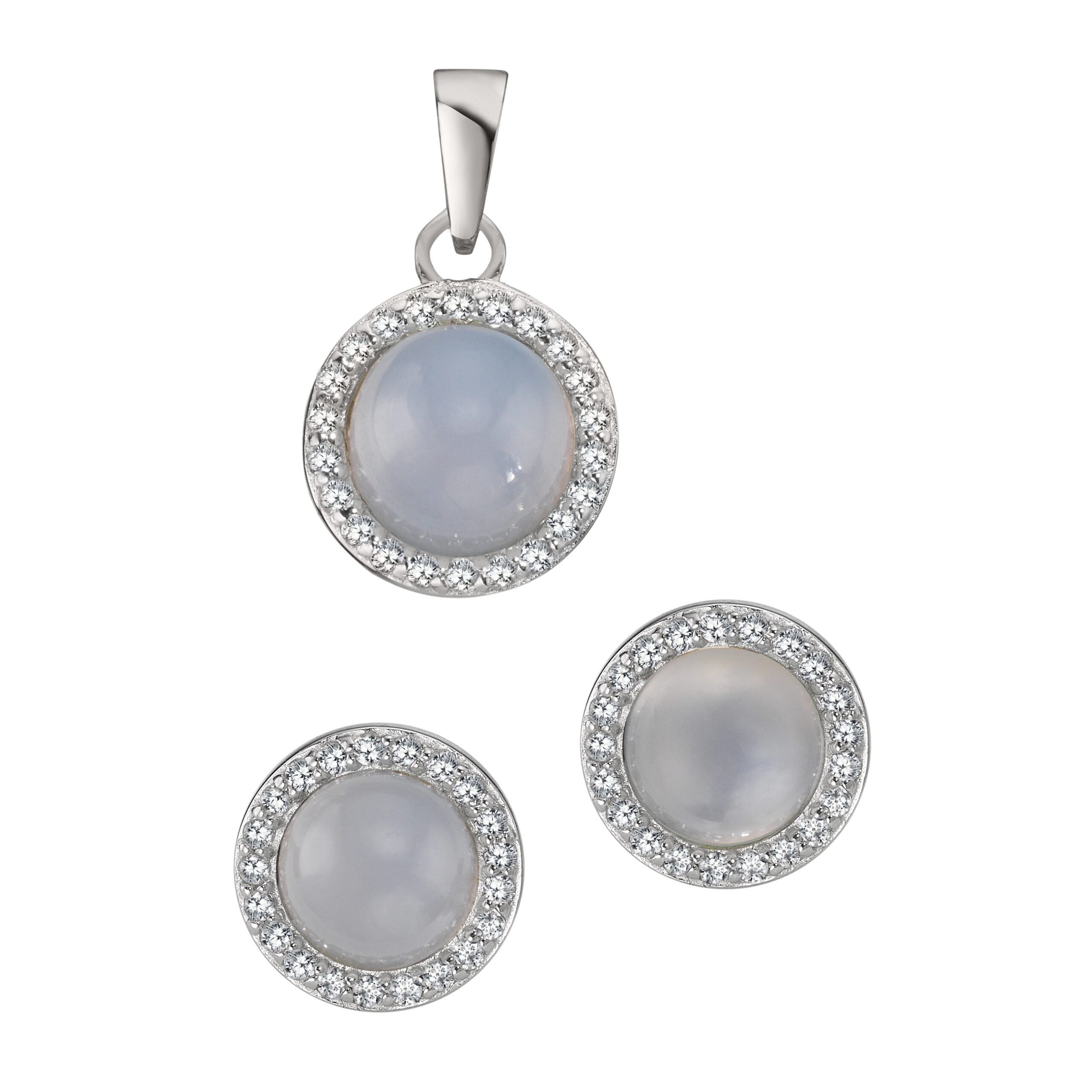 Ohrstecker und Anhänger m. Calcedon